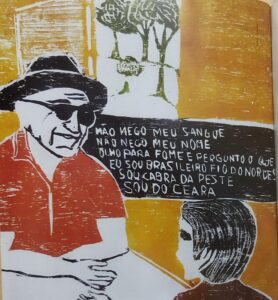 Trabalho de Xilografia feito pelo xilógrafo COSMO BRAS de JUAZEIRO DO NORTE – CEARÁ. Observe que uma foto é de madeira esculpida para depois ser passada a imagem para o papel. Clique na foto para ampliar.JUAZEIRO DO NORTE se destaca nos trabalhos de XILOGRAFIA!