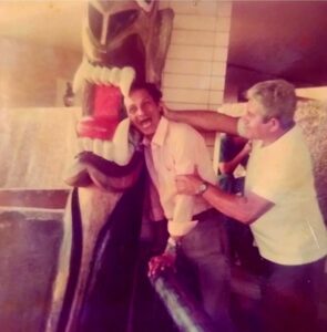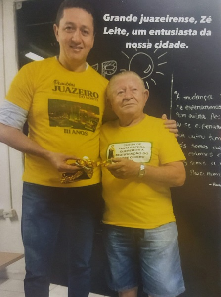 No começo da década de 1990, JOSÉ LEITE e seu amigo, o saudoso JOSÉ TIRO SECO, viajaram para JUAZEIRO DO NORTE e ao passarem na Rodoviária de PETROLINA – PE, JOSÉ LEITE mandou bater essa foto empurrando a Cabeça de JOSÉ TIRO SECO na BOCA DA CARRANCA. Momentos felizes da nossa vida!