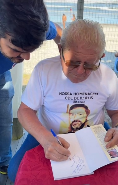 JOSÉ LEITE autografando seu Livro para o Prefeito Eleito de ILHÉUS, VALDERICO JÚNIOR. Clique na foto para ampliar.