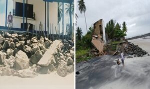 A CASA DE VERÃO DE JOSÉ LEITE LOCALIZADO NO BAIRRO SÃO MIGUEL! TUDO PELA INCOMPETÊNCIA DE UM TRATORISTA, FUNCIONÁRIO DA PREFEITURA DE ILHÉUS QUE RETIROU AS PEDRAS AO LADO DA CASA PARA COLOCAR EM OUTRO LUGAR, NÃO SABENDO QUE AS DITAS FORAM COMPRADAS POR JOSÉ LEITE. E AGORA? PAGANDO IPTU CARÍSSIMO, TODOS OS ANOS, É ASSIM QUE ESSA PREFEITURA TRABALHA, RECEBENDO O DINHEIRO E DESTRUINDO O IMÓVEL? A JUSTIÇA DEMORA MAS VAI TER DE CHEGAR!