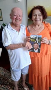 Os amigos ROQUE FRAGA e sua Esposa DONA RAIMUNDA recebendo o Livro da Biografia de JOSÉ LEITE. Foto: 29-12-2024. Clique na foto para ampliar.