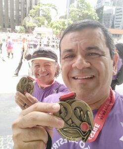 Até na SÃO SILVESTRE essa Família de JOSÉ LEITE é Destaque. Na foto: A Prima SOCORRO LEITE e seu Filho JÚNIOR, medalhistas depois da Corrida.
