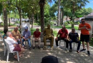 A Estátua de DANIEL WALKER ladeada por seus Amigos numa Reunião na Praça Padre Cícero. Infelizmente a Estátua vai ter de sair daquele local. Os Vândalos são terríveis! Clique na foto para ampliar.