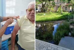 JOSÉ LEITE na última terça-feira (08-04-2025) tomou uma Vacina contra a GRIPE e outra contra a COVID, mas não gostou do que viu em frente a Sala de Vacinação: Água parada e muito Mato. Os mosquitos da Dengue estão em qualquer lugar. Clique na foto para ampliar.