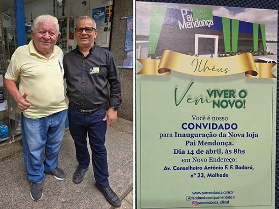 No último dia 08-04-2025 (terça-feira) JOSÉ LEITE recebeu a visita do Diretor ORLEANS convidando-o para a Inauguração do LOJÃO PAI MENDONÇA que acontece na próxima segunda-feira na entrada do malhado (pela Avenida Itabuna).