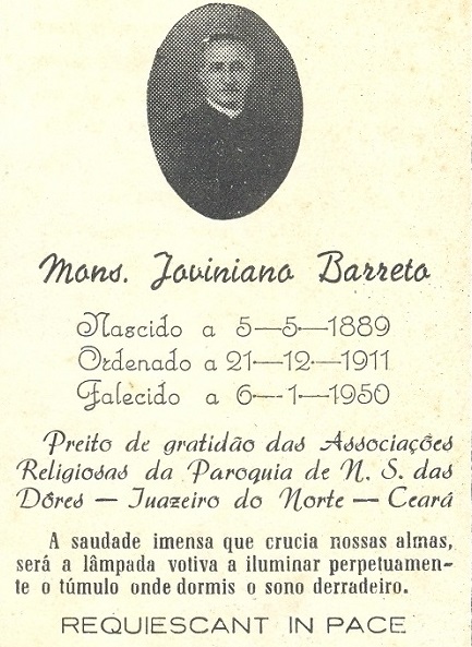Mons. JOVINIANO BARRETO morreu assassinado no dia da Colocação da Pedra Fundamental para a Construção do Santuário SÃO FRANCISCO em JUAZEIRO DO NORTE (06-01-1950). JOSÉ LEITE estava lá. Clique na foto para ampliar.