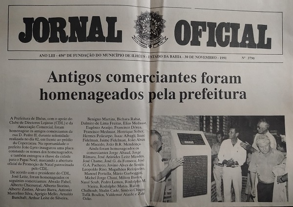 Relembrando homenagem aos antigos Comerciantes da Rua Dom Pedro II. Matéria tirada do JORNAL OFICIAL, edição de 30 de novembro de 1991.