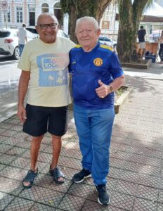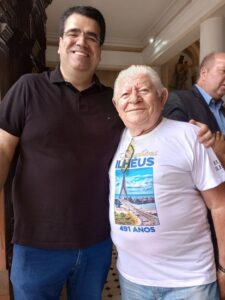JOSÉ LEITE com o amigo Dr. JÚLIO, atual Orador da Nova Diretoria da LOJA MAÇÔNICA REGENERAÇÃO SUL BAHIANA. Foto: 03-07-2025.