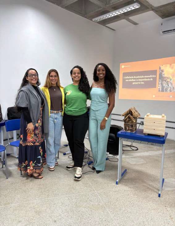 O projeto Impactos da poluição atmosférica sobre as abelhas Melipona mondury Smith 1863 (Hymenoptera: Apidae) é realizado pela coordenadora, professora Leila Oliveira Santos, pela coorientadora, professora Tácia Costa Veloso e pela bolsista e discente do Bacharelado Interdisciplinar em Ciências, Geanne de Jesus Silva. O objetivo é despertar o interesse pela cultura e sustentabilidade, promovendo a conscientização do público-alvo sobre questões ambientais, focalizando o incentivo à reflexão sobre a redução do impacto ambiental das atividades humanas nas populações de abelhas. Para esse fim, as pesquisadoras e extensionistas desenvolveram atividades de coleta e análise de dados e ações extensionistas junto a escolas da região. No âmbito da pesquisa, o interesse esteve em realizar a análise de contaminação do mel por metais.