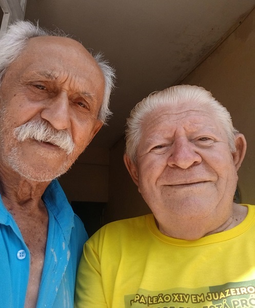 TICO CABOCLO e JOSÉ LEITE. Já faziam mais de 60 anos que os dois não se viam! Foto: 02-11-2025. Clique na foto para ampliar.