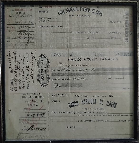 Nas décadas de 1930 e 1940, o movimento nos Bancos de ILHÉUS era grande. Observe essas 3 folhas de cheques de Bancos que existiram em ILHÉUS.