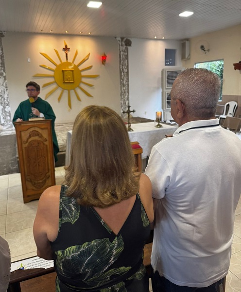 O casal FRANÇA LEITE e sua Esposa MARGARIDA BERTULINA assistindo à Missa de celebração dos seus 50 anos de casados. DEUS ABENÇÔE OS DOIS!!
