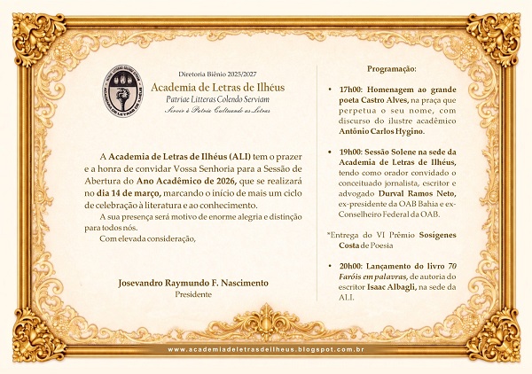 Do amigo Presidente da ACADEMIA DE LETRAS DE ILHÉUS, JOSEVANDRO NASCIMENTO. Clique na foto para ampliar.