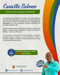 Do amigo Vereador e Professor GURITA. Presença CONFIRMADA!