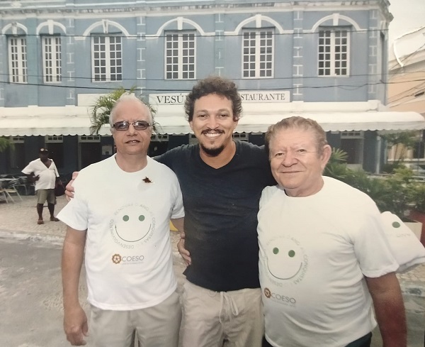 O grande ator global de novelas, séries e cinema, o Ilheense FÁBIO LAGO ladeado pelos seus amigos LIBÉRIO MENEZES FILHO e JOSÉ LEITE DE SOUZA.