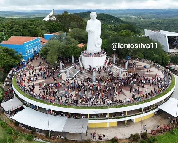 Estátua com aglomeração de gente, mais de 100 mil pessoas visitaram o HORTO nessa Páscoa onde se encontra a Estátua do PADRE CÍCERO.