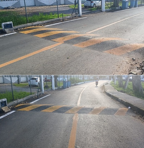 A maioria dos QUEBRA-MOLAS de ILHÉUS não tem pintura, e os que tem não tem manutenção. Vamos ver agora com o novo Superintendente de Trânsito. Na foto: Trecho do complemento da Avenida Litorânea Norte (Avenida do contorno) cujo o nome é AVENIDA JOÃO ALFREDO AMORIM DE ALMEIDA e será inaugurada no próximo dia 30 de abril.