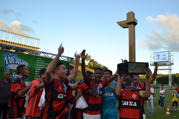 O Flamengo é o grande campeão da Copa 2 de Julho de Futebol sub 15. A garotada rubro-negra bateu o Bahia por 2 a 0 na tarde desta quarta-feira (13), no Estádio de Pituaçu, em Salvador, e conquistou a nona edição da competição. Os gols da partida foram marcados por João Vitor e Yuri, que também foi escolhido como melhor jogador do torneio. A equipe carioca ainda teve o jogador revelação, Daniel de Oliveira, e o melhor treinador, Ramon Lima.