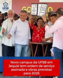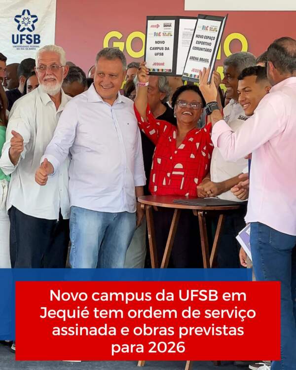 O município de Jequié sediou, na última sexta-feira (30), a cerimônia de assinatura da Ordem de Serviço para a construção do novo campus da Universidade Federal do Sul da Bahia (UFSB). O ato ocorreu às 14h e marcou mais um passo importante no processo de expansão e interiorização do ensino superior público na Bahia.